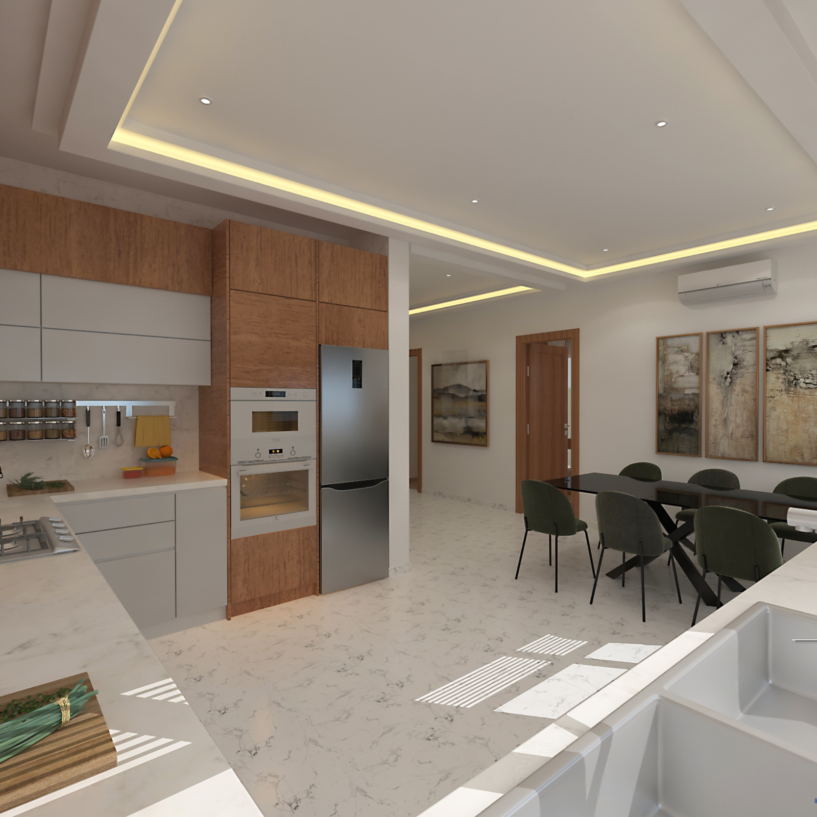 L’appartement dispose également d’une cuisine moderne et bien équipée, conçue pour allier fonctionnalité et esthétique. La distribution des espaces a été soigneusement pensée afin d’optimiser chaque mètre carré et garantir une circulation fluide entre les différentes pièces.