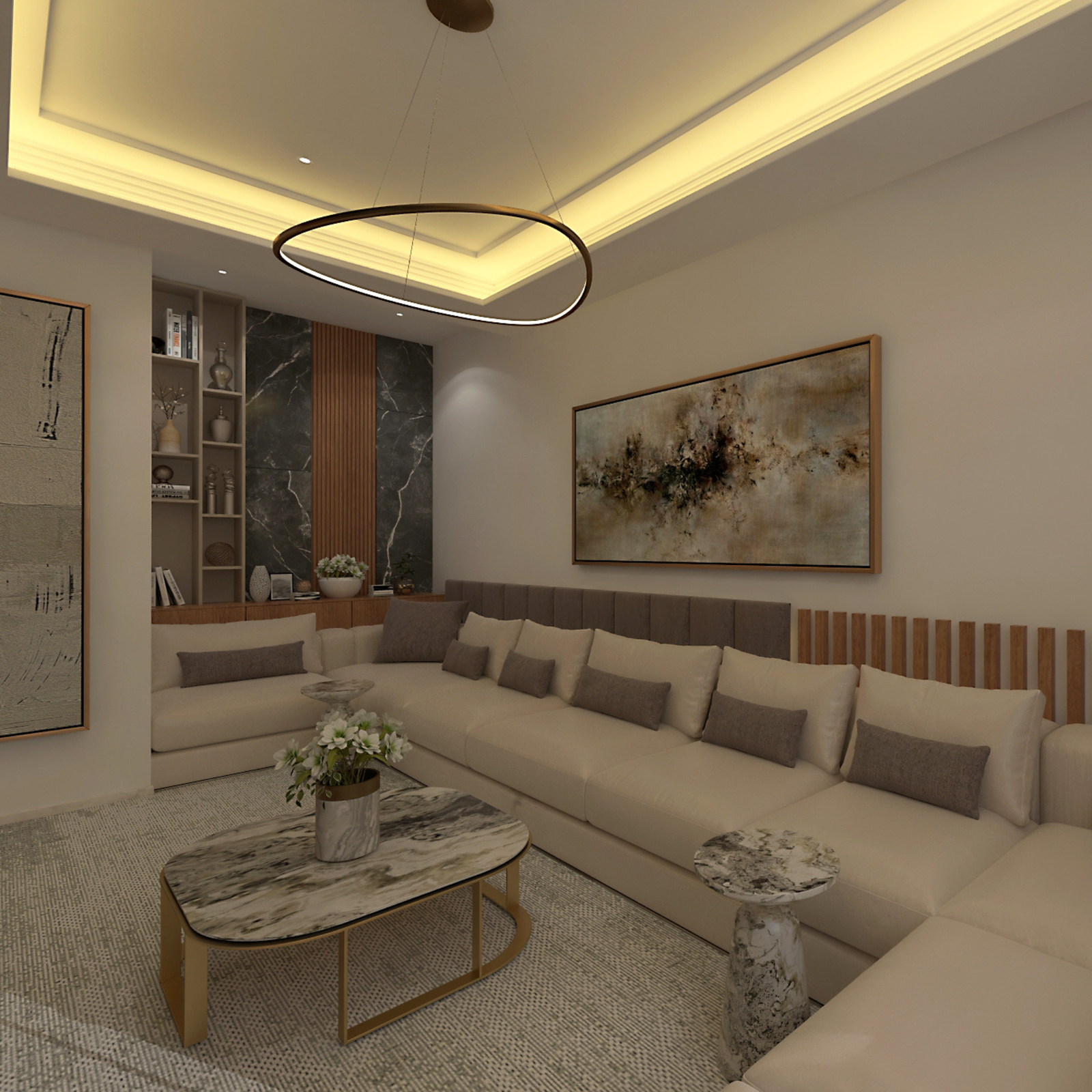 Aménagement intérieur moderne alliant élégance, luminosité et matériaux nobles pour une villa haut standing à Rabat.